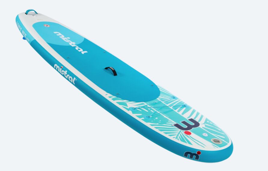 Easily stored, the space-saving, lightweight Leafs SUP 10’6 is super convenient. It delivers ease of transportation, speed of readiness, and deflation requiring no special tools in an all-in-one paddleboard solution. As a bonus, you can enjoy stand-up paddling or sit-down kayaking, connecting a Mistral Kayak seat to deck D-rings.