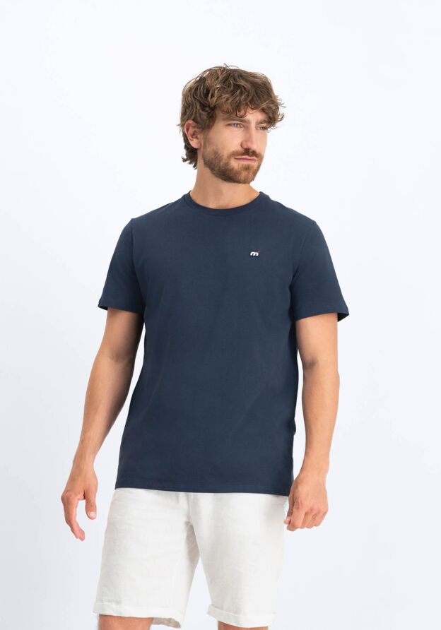 Our Mistral dark blue fabric-coloured Salens crewneck T-shirt is the epitome of comfort in casual wear. It's crafted from a blend of cotton and elastane, designed to fit perfectly, offering a unique combination of softness, durability, and a smooth, skin-friendly feel. It's not just a fashion statement but a long-lasting investment in your comfort and style.