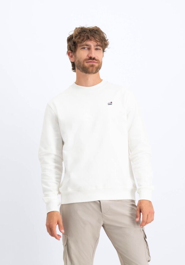 El tejido de canalé del cuello redondo mantiene la forma y da un aspecto de sudadera clásica. Los puños y el dobladillo inferior acanalados tienen un acabado 2:1 para un rendimiento antideslizamiento.