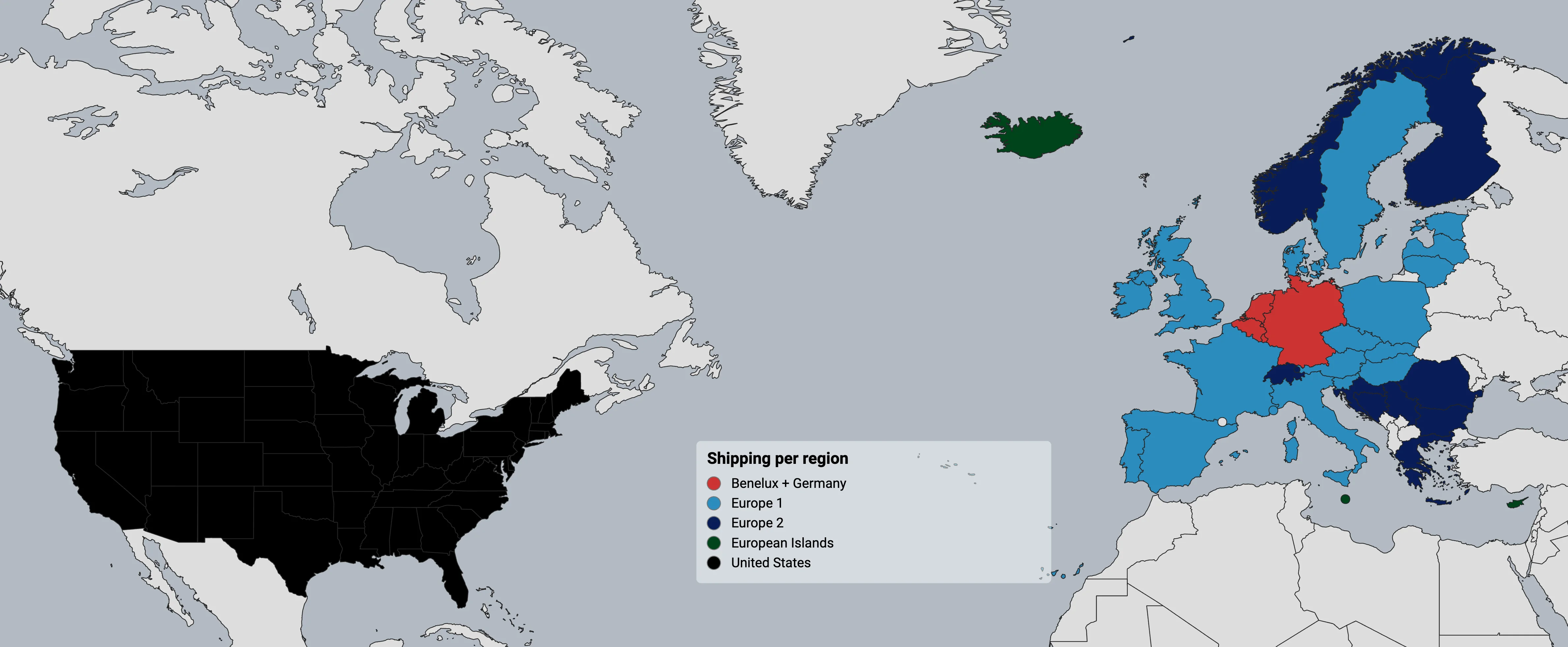Realizamos envíos a muchos países y los costes de envío se calculan según la región. Nuestro mapa ofrece una referencia de los países a los que enviamos y cómo los clasificamos por región.